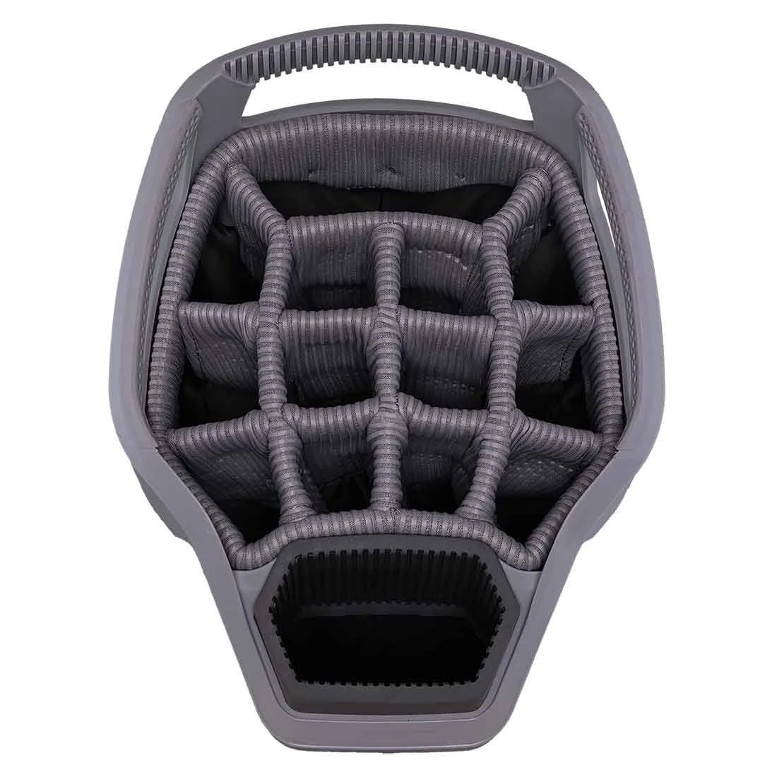 Smart Strap System attaches the bag to a riding cart with two Velcro® straps, which stop the bag from twisting on the cart and prevent the riding cart’s straps from interfering with pocket usage. - Fourteen full-length club dividers protect clubs and prevent the migration of club shafts.